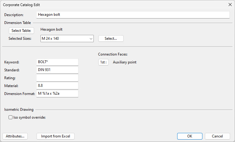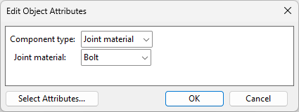 Attributes – Set the Joint material attribute to the appropriate type, such as Bolt, Stud bolt, Nut, or Washer.