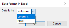 Select columns or rows, depending on how the data is arranged in the Excel, and click OK.