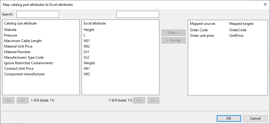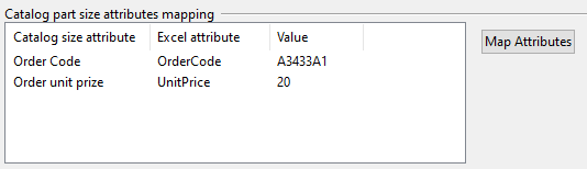 Click Map Attributes. The Map catalog part attributes to Excel attributes dialog opens.