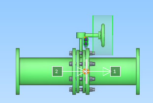 In the 3D model, a flange can only be connected to another flange or wafer-style body if the connecting faces have been defined as compatible in the Compatibilities between connection faces configuration.
