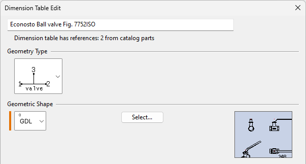 In the Dimension Table Edit dialog, after selecting the geometric type to use, in the Geometric Shape section you can select the geometric shape to use.