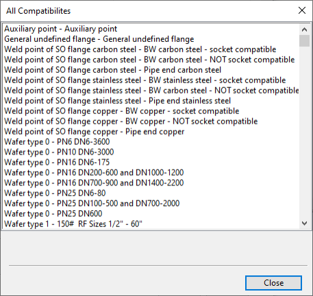 Click Browse. The All Compatibilities dialog opens, listing all connection faces that are compatible with each other.