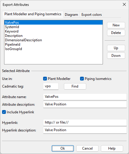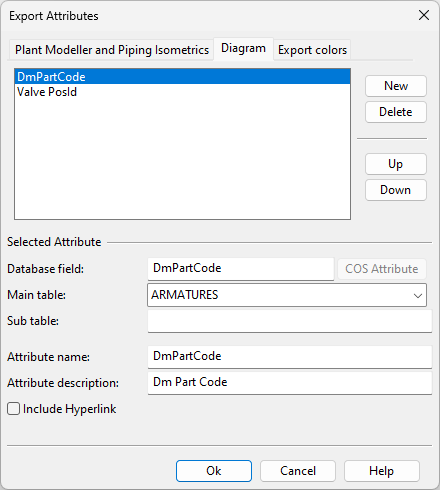 Configuring export attributes for Plant Modeller and Piping Isometrics & Spools