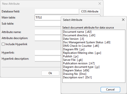 • Database field – Enter the name of the database field from which to get the attribute. For a title box attribute, you can click the COS Attribute button to select a COS attribute tag from a list.