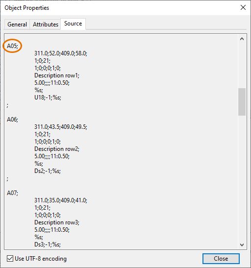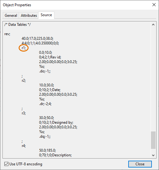 If the tag relates to a column in a data table and the value consists of multiple rows, each row is exported as a separate attribute and the table row number and line number will be appended to the attribute name in export: