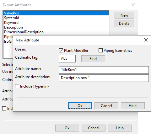 In the Export Attributes dialog, you can define which attributes to include in documents that are exported from Plant Modeller or Piping Isometrics & Spools.
