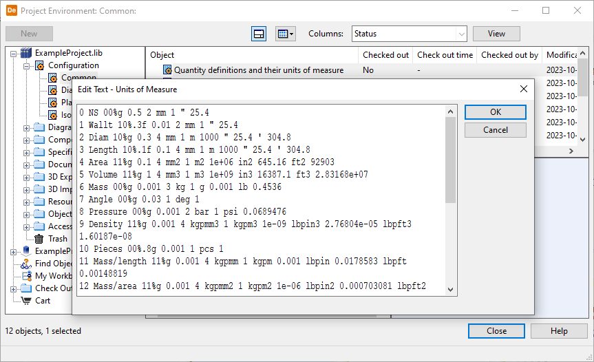 In the Project Environment dialog, in [library] > Configuration > Common > Quantity definitions and their units of measure, administrator can define how to convert quantity values in input into the base units of the program. The base unit for length values is millimeters, and the base unit for angle values is degrees.