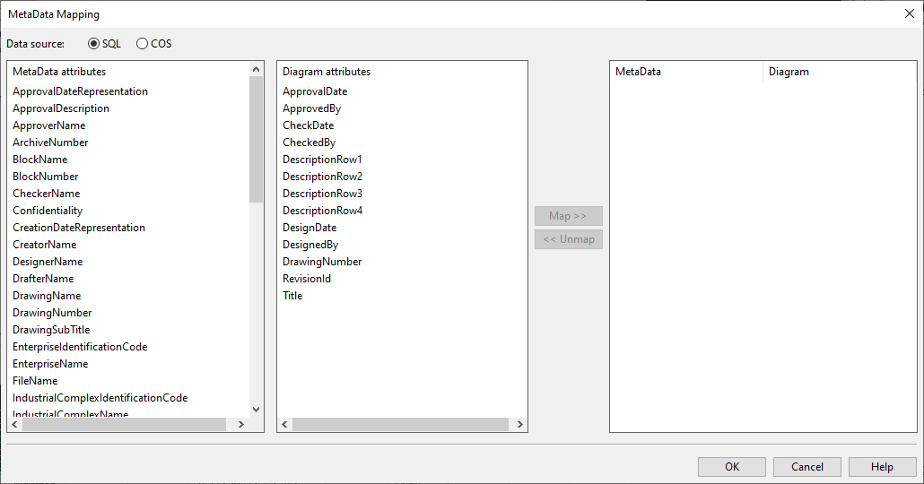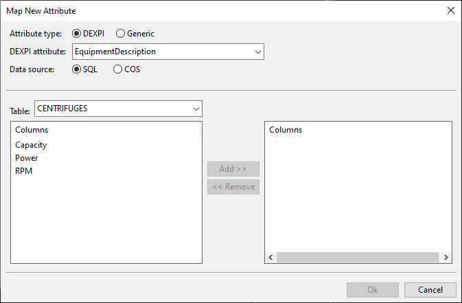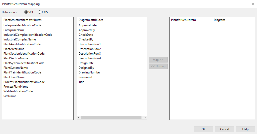 2. Browse to [project] > Diagram > DEXPI Mapping and select New > DEXPI Mapping. The Edit Attributes dialog opens.