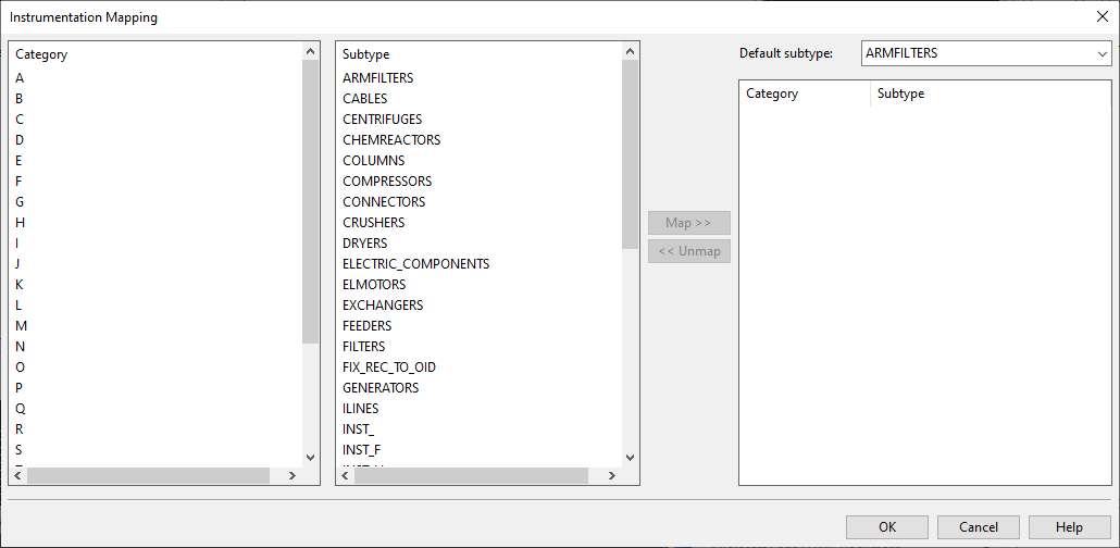 You can create a single DEXPI mapping configuration or separate mappings for export and import, as appropriate. The easiest way to define the required mappings is to create an empty mapping configuration and then import some DEXPI files—the required mappings can be added to the configuration during the import—but it is also possible to define all the mappings manually.