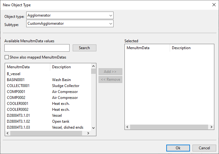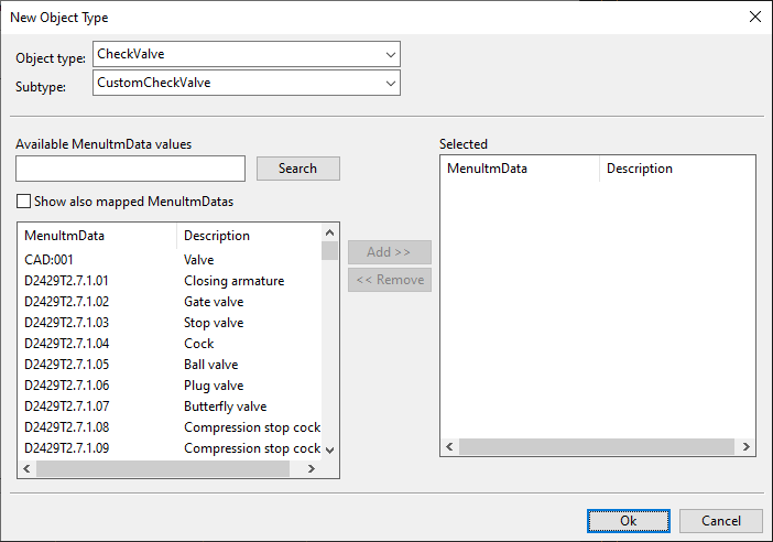 • You can add object types for piping parts by clicking New Object Type.