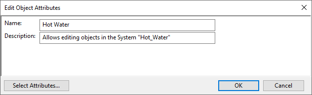 In this example, we create an access rule where the model query selects all objects whose System name is "Hot_Water". Accordingly, the user of this rule will only be able to modify objects that are assigned to that System.