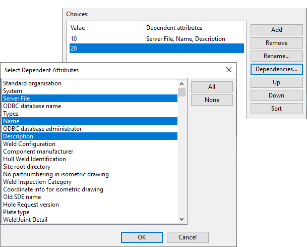 Select the desired value, and click Dependencies. The Select Dependent Attributes dialog opens.