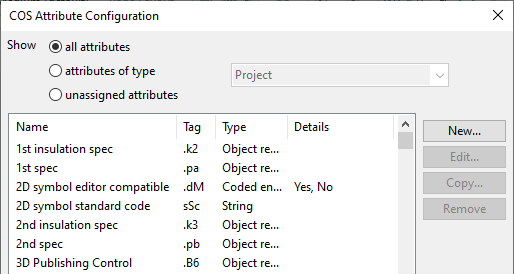 Note: Upgrading to a new software version will automatically rename any user-defined attributes that share the same name with a default attribute in the new COS schema. The renaming process appends the tag of the user-defined attribute in parentheses after the attribute's name, for example: 'Gasket material (gMA)'.