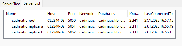 In the CADMATIC desktop, Object > Manage COS Servers opens the Manage CO Designer dialog where you can manage COS networks and COS servers. This tool has some additional features that the original Object > Manage COS tool does not have, such as being able to set a replica server offline via its master server, and scheduling backups for multiple servers.