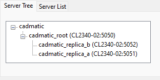 In the Manage CO Designer dialog, the Server Tree tab displays a hierarchical tree of known COS networks. Each network includes exactly one root COS server, which is usually accompanied by one or more subordinate COS servers. In the context of replication, a server with its own subordinates is referred to as a 'master server', and its direct subordinates are called 'replica servers'.