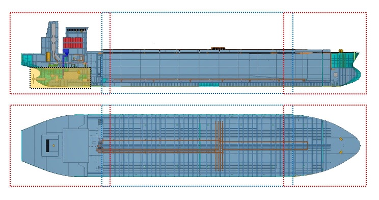 A shipyard wants to buy designs from two subcontractors, A and B. Subcontractor A will design some blocks at the aft and some at the fore, and B will design the mid ship part. The shipyard wants to design the engine room and does not want to share the engine room model with A or B.
