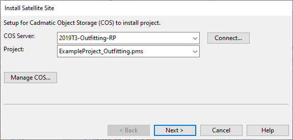 1. In the CADMATIC desktop, select Object > Install Satellite Site. The Install Satellite Site wizard opens.