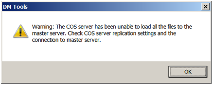 If a replica server has an online connection to its master server and there are problems uploading the files, the replica server informs its clients with the following error message.