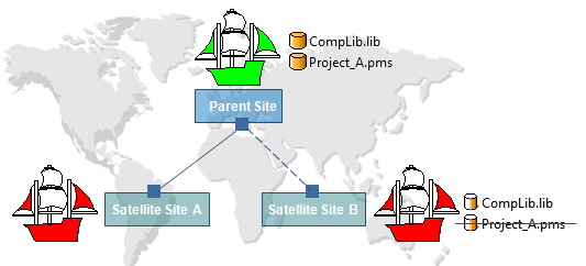At the parent site, open the CADMATIC desktop and select Object > Manage Project > Replication. Select the satellite site and choose Detach.