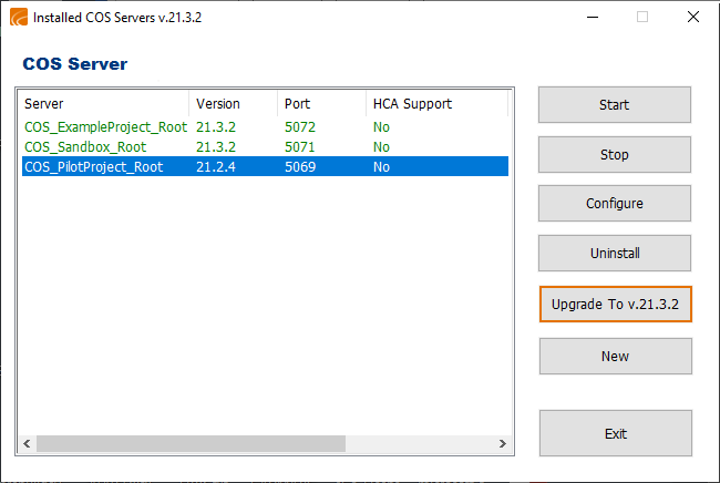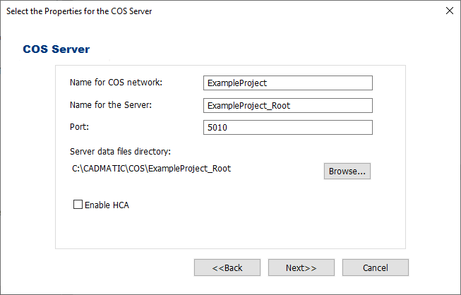 Note: In this example, the new COS server is named as "ExampleProject_Root".