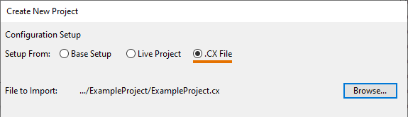 Right-click any configuration view and use the Import from CX File command to import the .cx file that you exported from the example project.