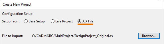 Note: In this example, the import folder is C:\CADMATIC\CX.