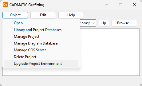 Still in the CADMATIC desktop, select the pilot project and then Object > Upgrade Project Environment.
