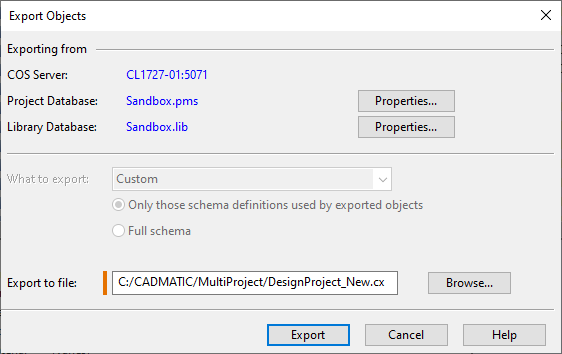 Next, export the library database and the project database of the design project that you have chosen as the pilot project.