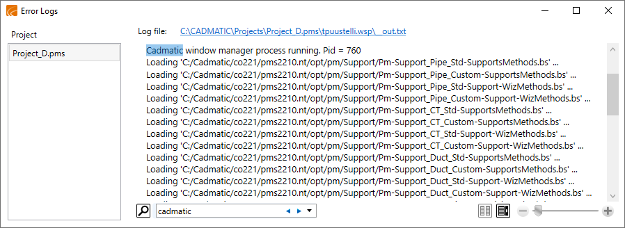 In the CADMATIC desktop, browse to your user workspace folder in the pilot project and select Object > Tools > Multi-Project Maintenance. The Multi-Project Maintenance dialog opens.