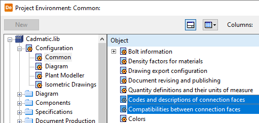 In the CADMATIC desktop of your old installation, select the pilot project, select Object > Library and Project Databases, browse to [library] > Configuration > Common, and relinquish the ownership of the configuration objects "Codes and descriptions of connection faces" and "Compatibilities between connection faces".