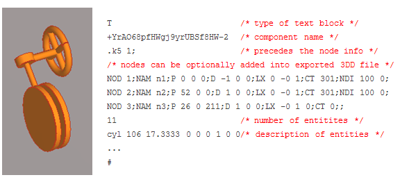 This text block describes the geometry of the predefined component (equipment, structure component or standard component) from COS that will be later instantiated. Format of the text block is: