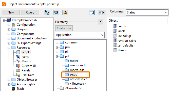 In the Project Environment dialog, the setup scripts can be found in [library] > Resources > Scripts > pd > setup.