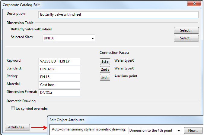 Note: The attribute Auto-dimensioning style in isometric drawing of the valve in the Corporate Catalog must be set to "Dimension to the 4th point".