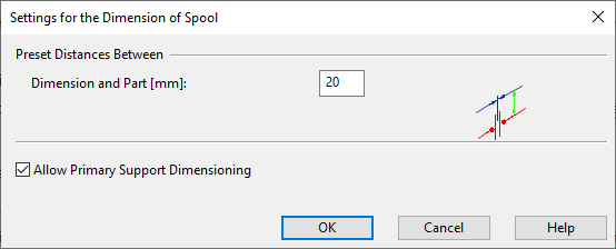 In the Settings for the Dimension of Spool dialog, you can define the following settings for spool drawings created in Piping Isometrics & Spools.