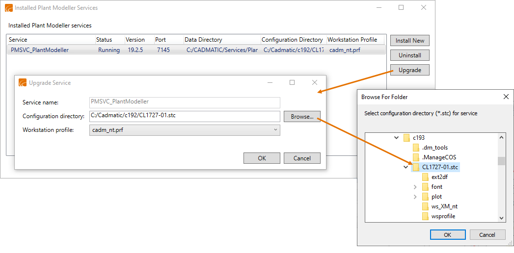 From the Installed Plant Modeller Services dialog, select the command Upgrade, and the Upgrade Service dialog opens.