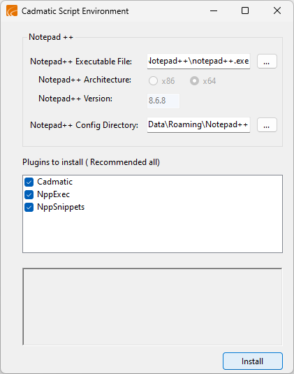 2. Run the file Installer.exe. The Cadmatic Script Environment dialog opens.