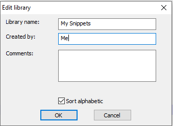 3. Select the snippet from the list for editing. Make changes and click Close.