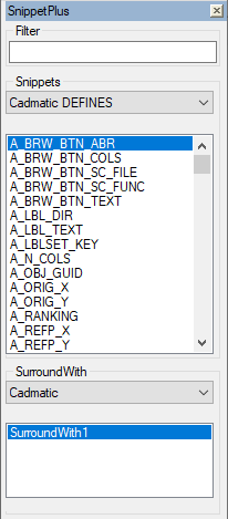 • SnippetPlus (32-bit only) – A third-party plugin that allows inserting code snippets and surrounding the snippet with other code.