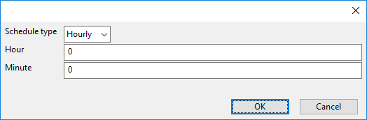 You can select the task to be performed either hourly or daily and specify the start time. If the task is performed hourly, the Hour field's value is not relevant as the task will be started at the specified minute every hour. Click OK to accept the settings.
