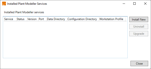 You can upgrade a service created in a previous software version to be compatible with the new version by selecting the service and clicking Upgrade. For more details, see Upgrading Plant Modeller services and service instances.