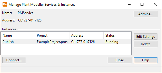 Edit Settings – Select this to modify the settings of the selected Service Instance. See Plant Modeller service instance settings for details.