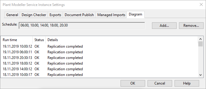 On the Diagram tab, you can schedule automatic replication of diagrams that are created with the CADMATIC P&ID application and stored in the SQL database.
