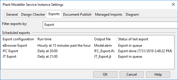 On the Exports tab, you can schedule exporting of 3D model data to various formats.