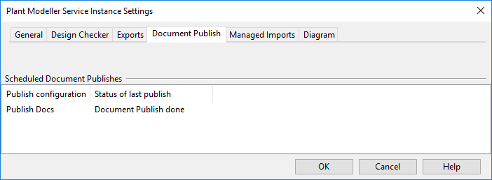 Area update interval in seconds – Specifies how often the Service Instance updates the area model, updates P&ID integration data, and publishes documents (see Document Publish tab).