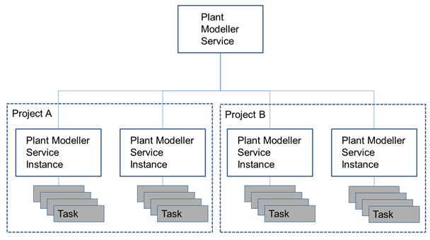 Plant Modeller Services enable the project administrator to automate and schedule various tasks. A Plant Modeller Service consists of one main process which runs as a Microsoft Windows service and hosts one or more Service Instances. Service Instances are batch-mode processes that run in the context of a project and execute the scheduled tasks daily or hourly. For example, scheduled tasks can export a CADMATIC eBrowser model file (.ebm), publish the 3D model and the design documents to CADMATIC eShare, and synchronize P&ID data with the 3D model in COS.