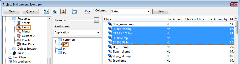 In Project Environment > [project] > Resources > Icons, select New > Icon to create a new icon COS object (type .bmp), and store your custom icon image in this object.
