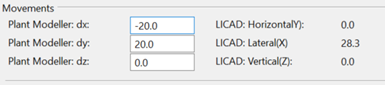 In Plant Modeller the user defines movements in CADMATIC global directions. These values are stored in attributes (see Support COS Attributes) and transformed into local LICAD movements which are shown in the user interface (read-only).