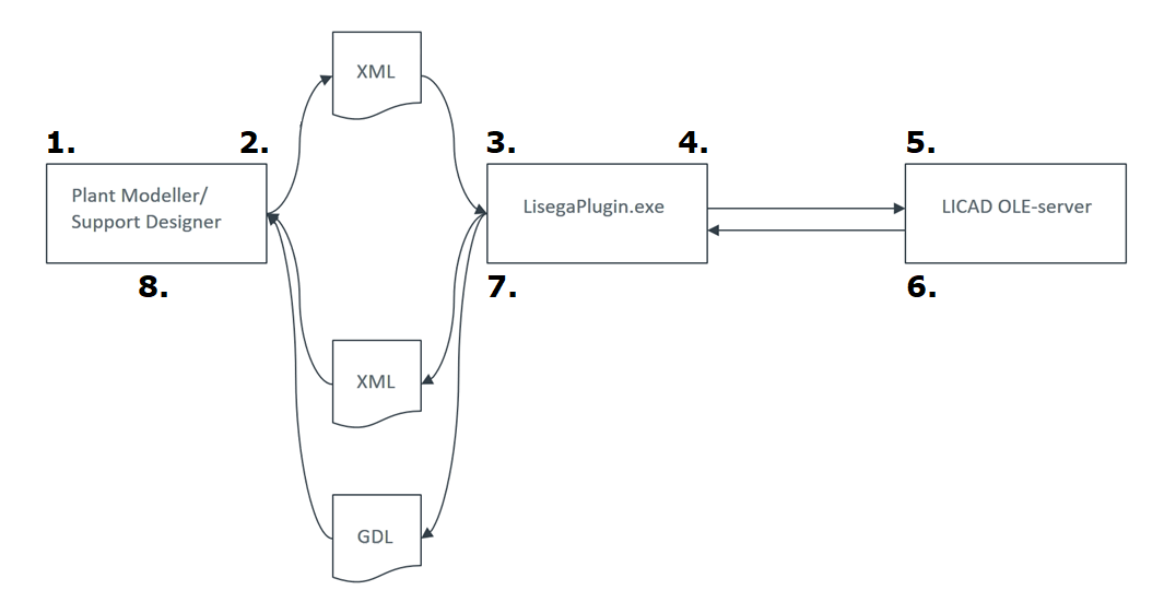 4. The LISEGA plugin connects to the LICAD OLE server and passes the data to it.