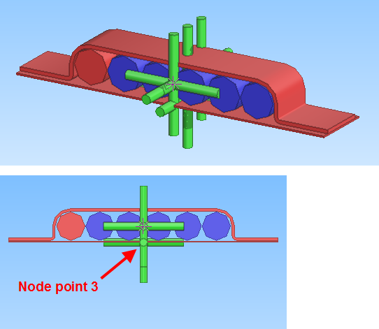 The rules for defining the geometry of multi-clamps are the same as those of all other primary supports: the geometry type is DM_GT_TEE (Geometry Type 7) and node point 3 defines the surface of the secondary steel. All node points must be auxiliary points.