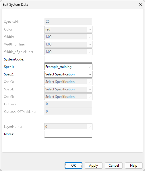 In this dialog, you can edit the system specific attributes that are stored in the SQL database of P&ID.
